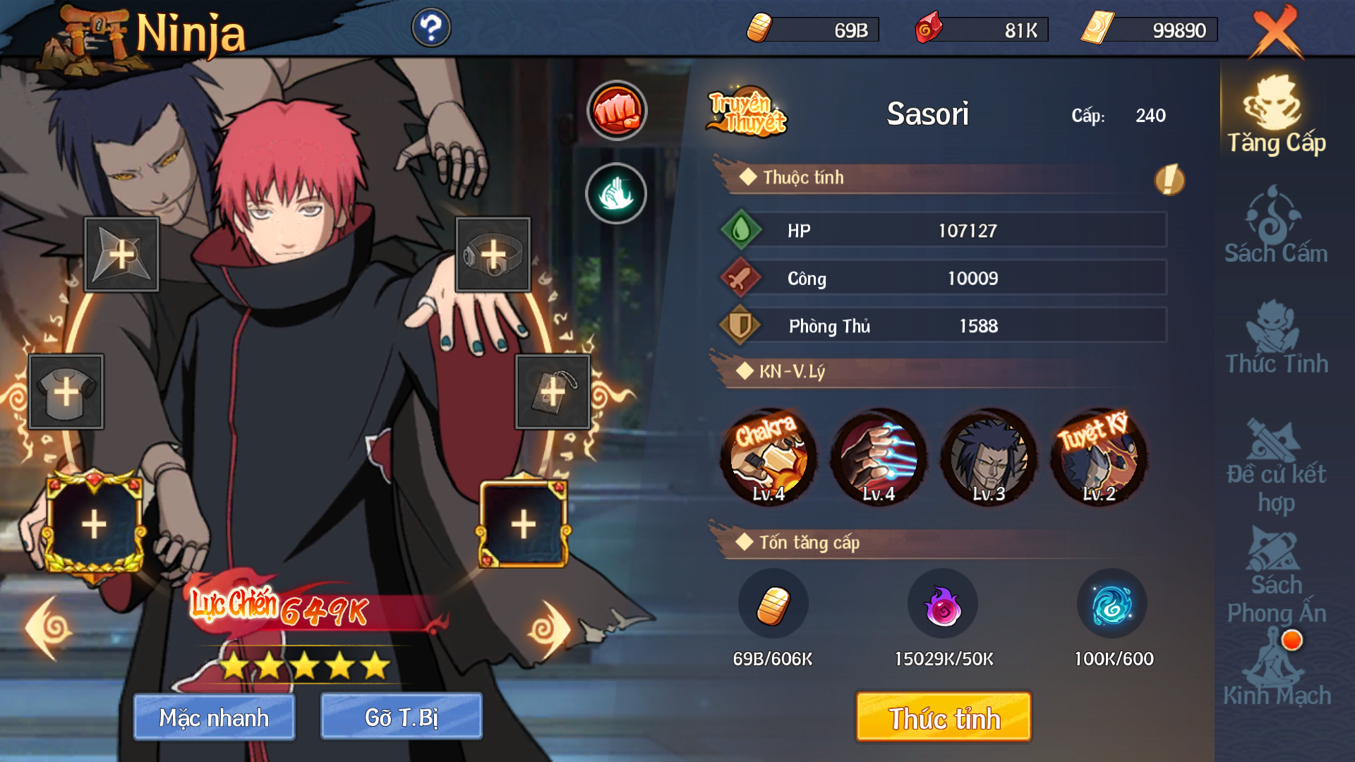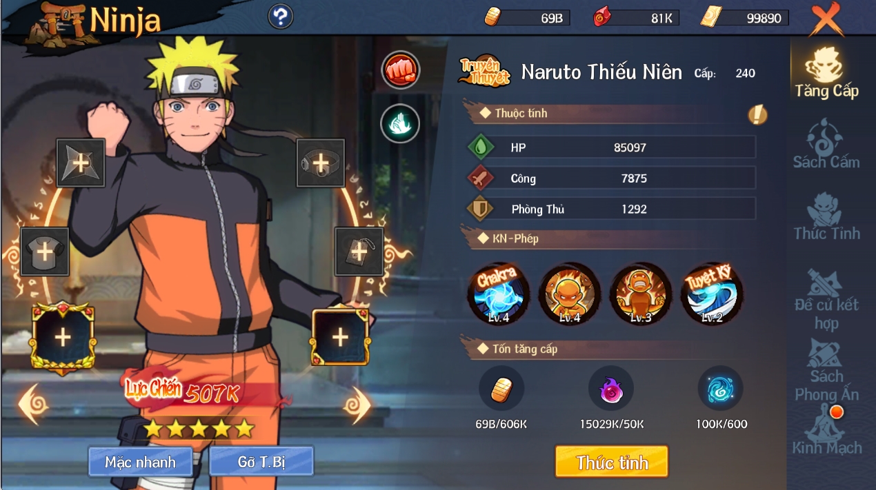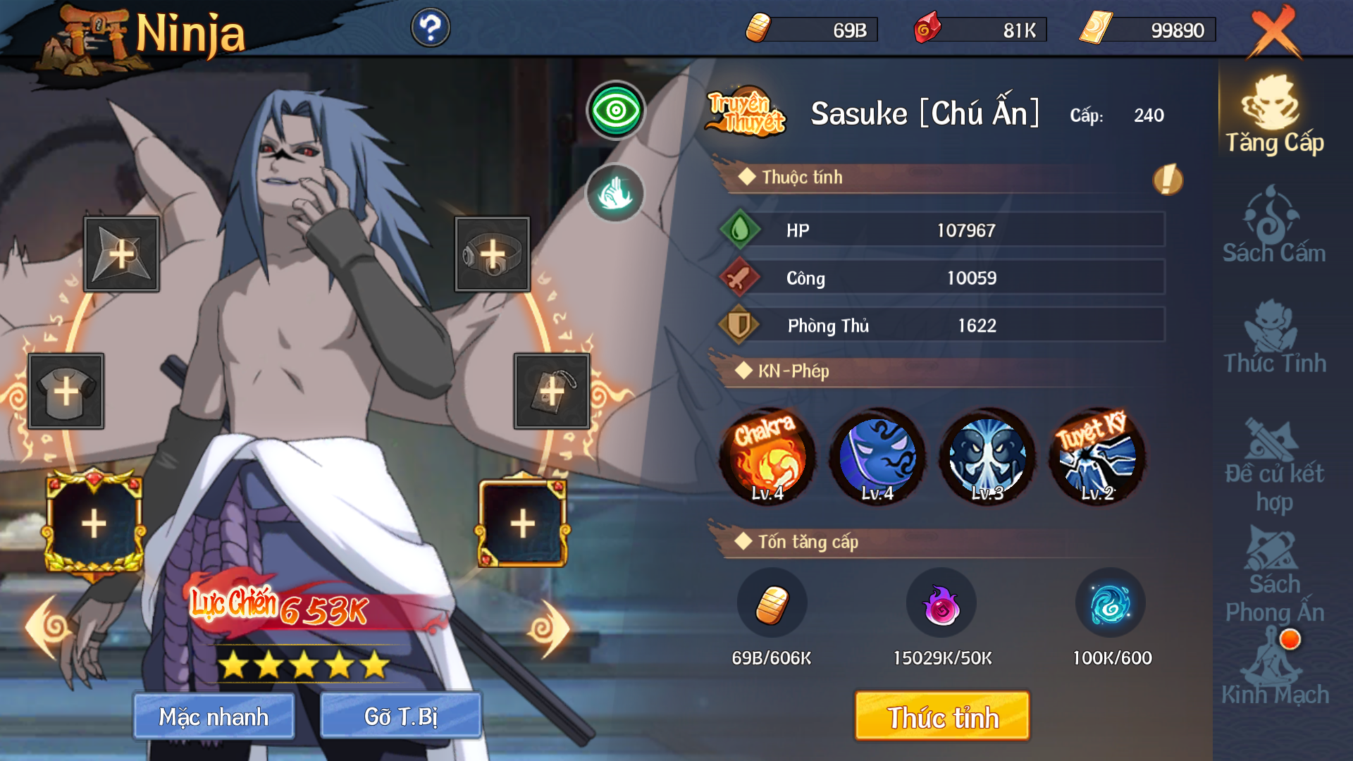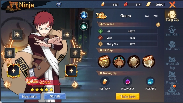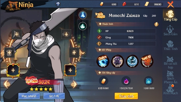 - Ưu Điểm: Khi sử dụng đội hình này sẽ kích hoạt vòng sáng phe Thể Thuật đồng thời mỗi Ninja đều có sát thương cuồng bạo mạnh mẽ để gây khó chịu cho đối phương sử dụng đội hình Ảo Thuật.