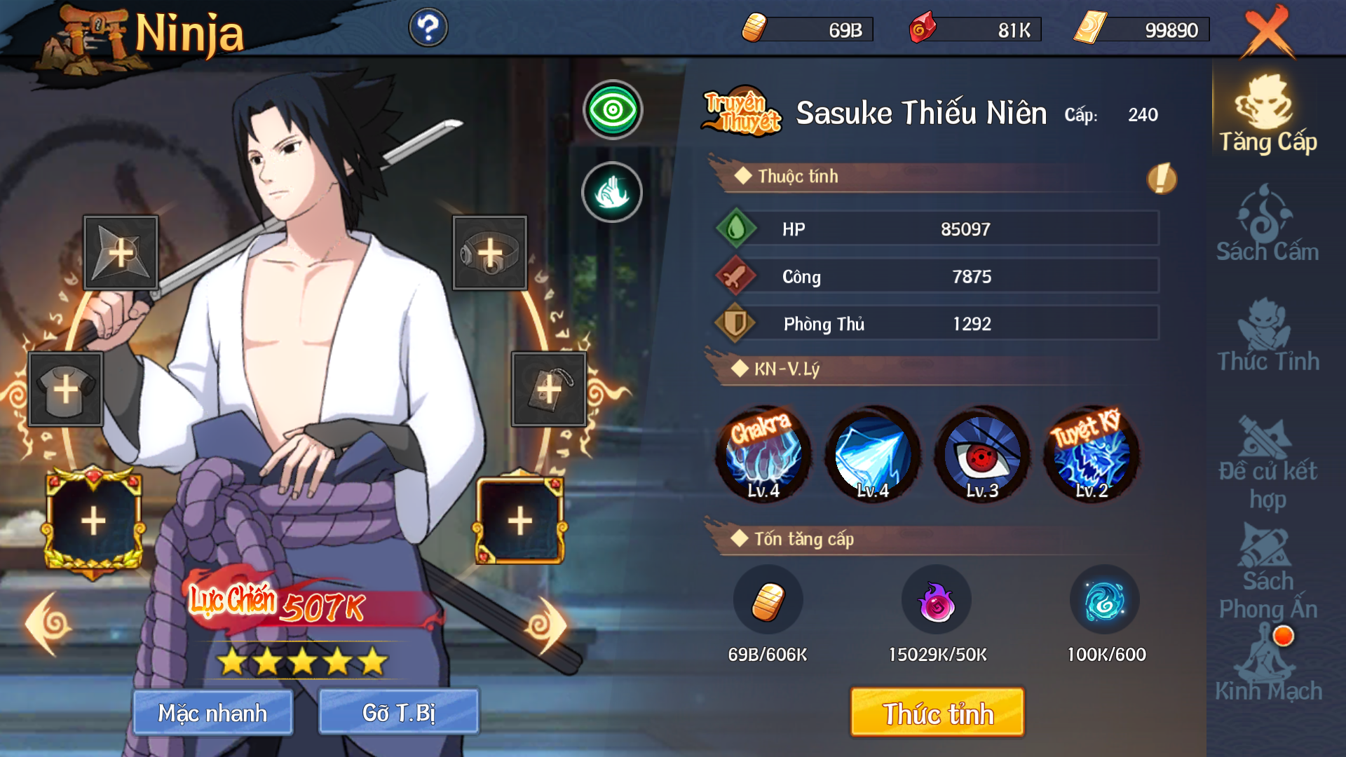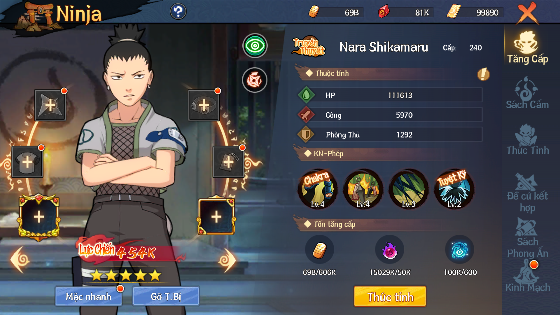 - Ưu Điểm: Đã là Ninja là phải có triệu hồi ảo ảnh, đây là dàn Ninja sức mạnh Triệu Hồi hỗ trợ với mục tiêu lấy số nhiều đánh số ít (lấy thịt đè người)