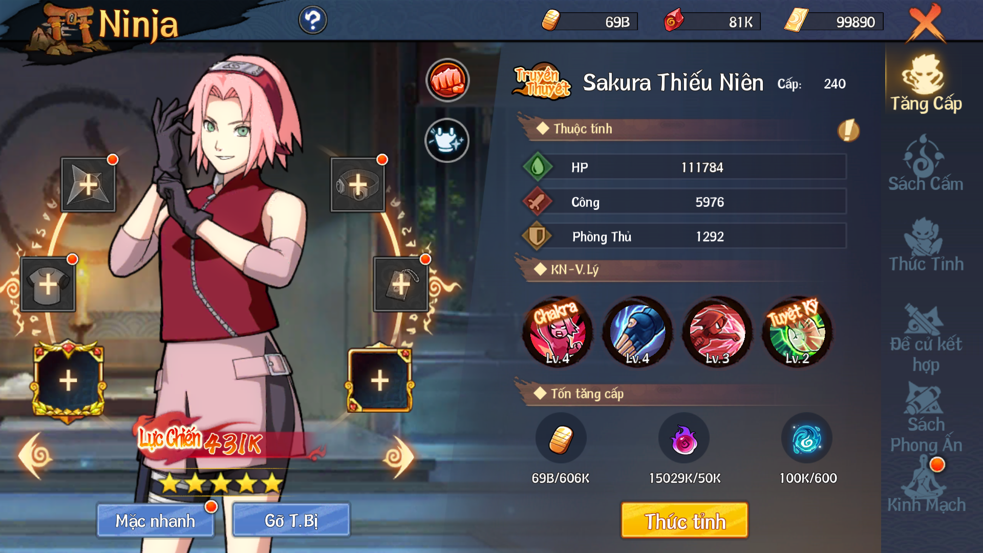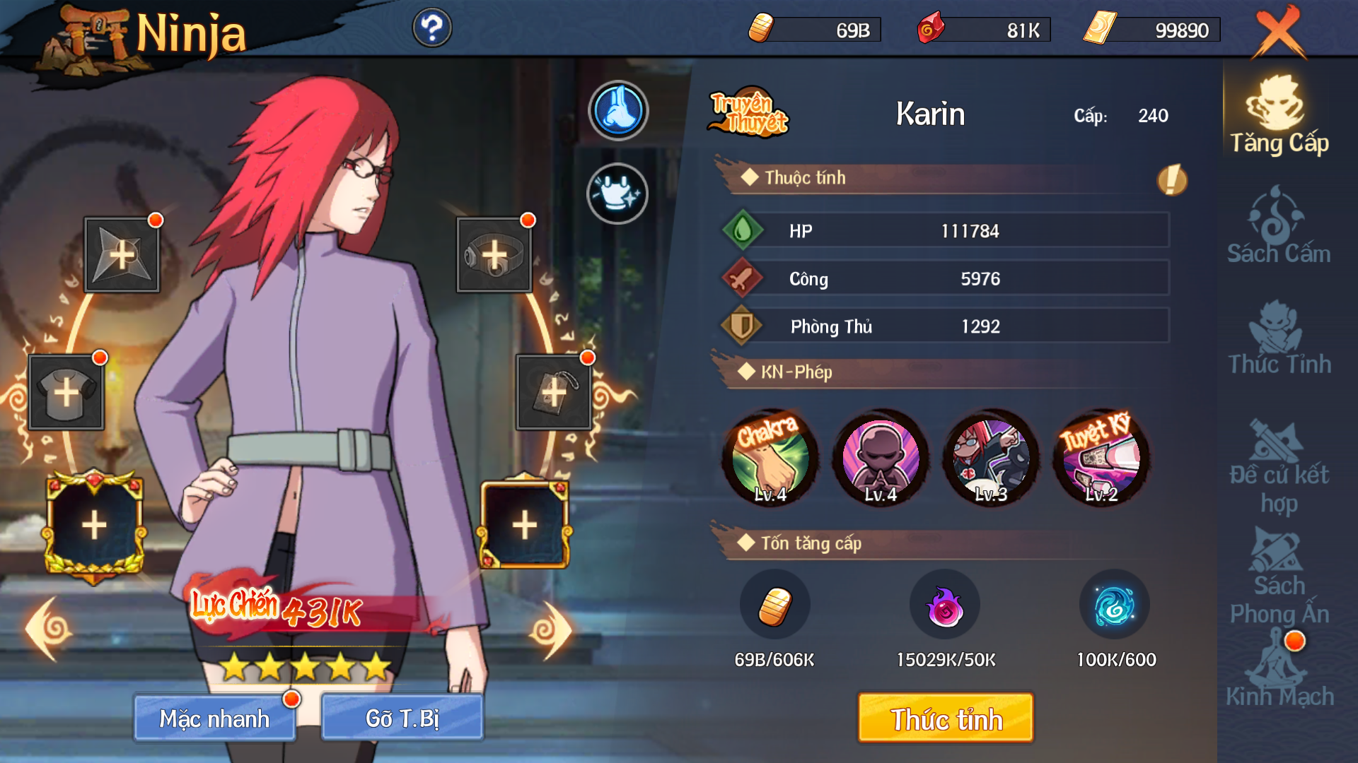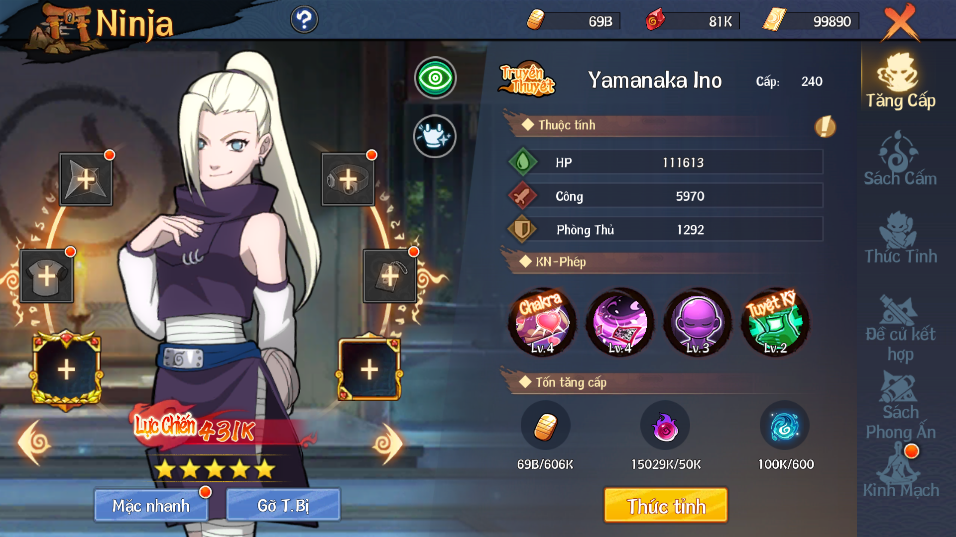 - Đội Hình Tham Khảo: Suigetsu Hozuki - Karin - Sakura Thiếu Niên - Sasuke Thiếu Niên - Temeri - Ino