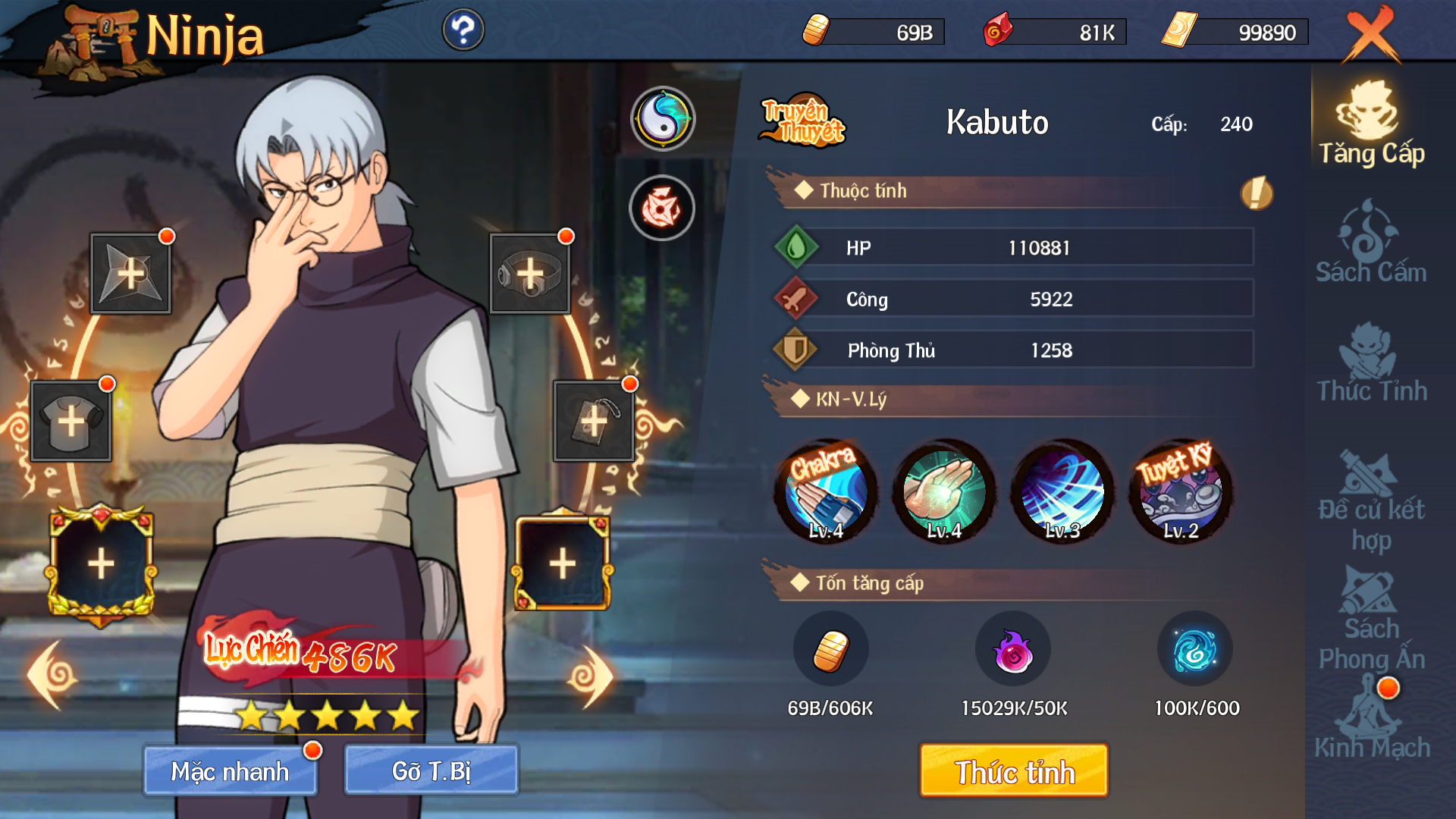 - Đội Hình Tham Khảo: Hidan - Danzo - Nagato - Kabuto - Tu La Đạo - Orochimaru